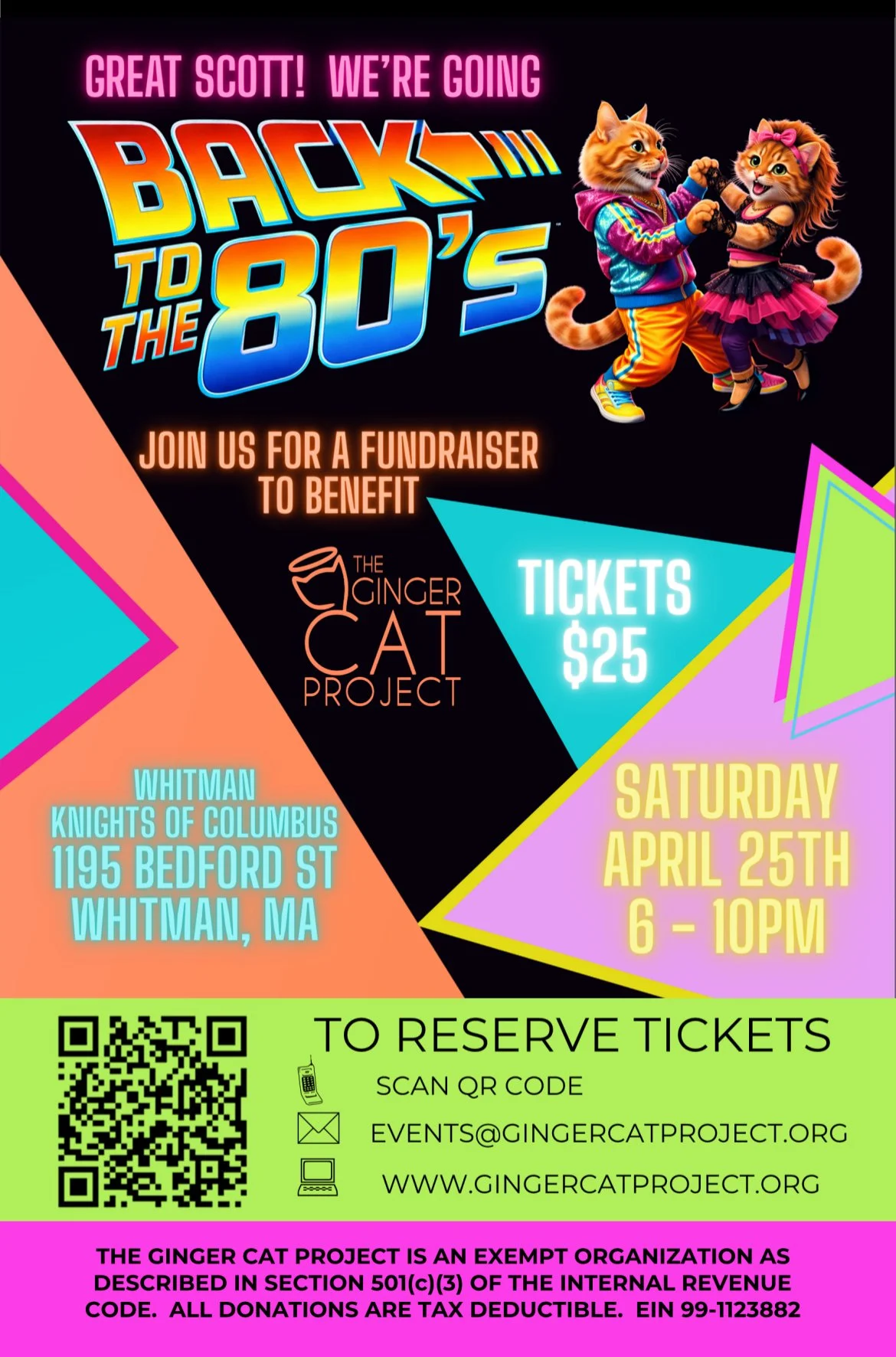 The Ginger Cat Project is turning back the clock for a totally tubular 80’s-themed fundraiser in support of our mission to help older and medically challenged animals find loving homes. It’s going to be big hair, big hearts, and big-time fun.